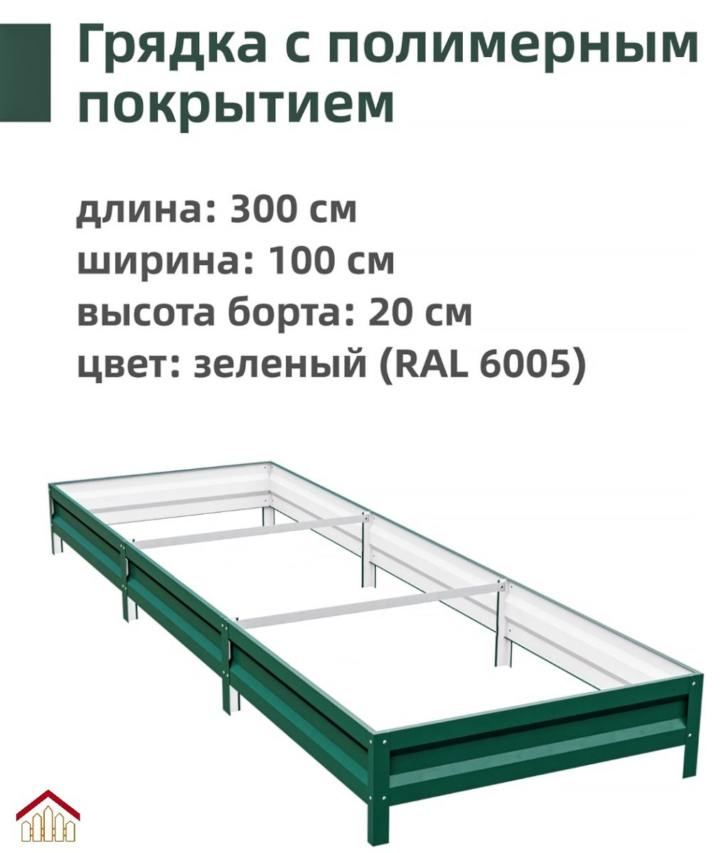 Эта прочная грядка с полимерным покрытием станет отличным дополнением вашего сада или огорода. Изготовленная из высококачественных материалов, она обеспечит вашим растениям идеальные условия для роста и развития. Грядка имеет размеры 1,0x3,0 метра и высоту борта 20 сантиметров, что позволяет выращивать различные виды растений, включая овощи, зелень и цветы. Полимерное покрытие защищает металл от влаги и гниения, продлевая срок службы конструкции. Цвет грядки — зеленый (RAL 6005), что гармонично сочетается с природным окружением и придает ей эстетичный вид. Конструкция проста в сборке и не требует специальных инструментов. Благодаря своей прочности и долговечности, эта грядка станет надежным помощником в вашем саду на долгие годы. Она идеально подходит для тех, кто ценит качество и функциональность в уходе за растениями.
