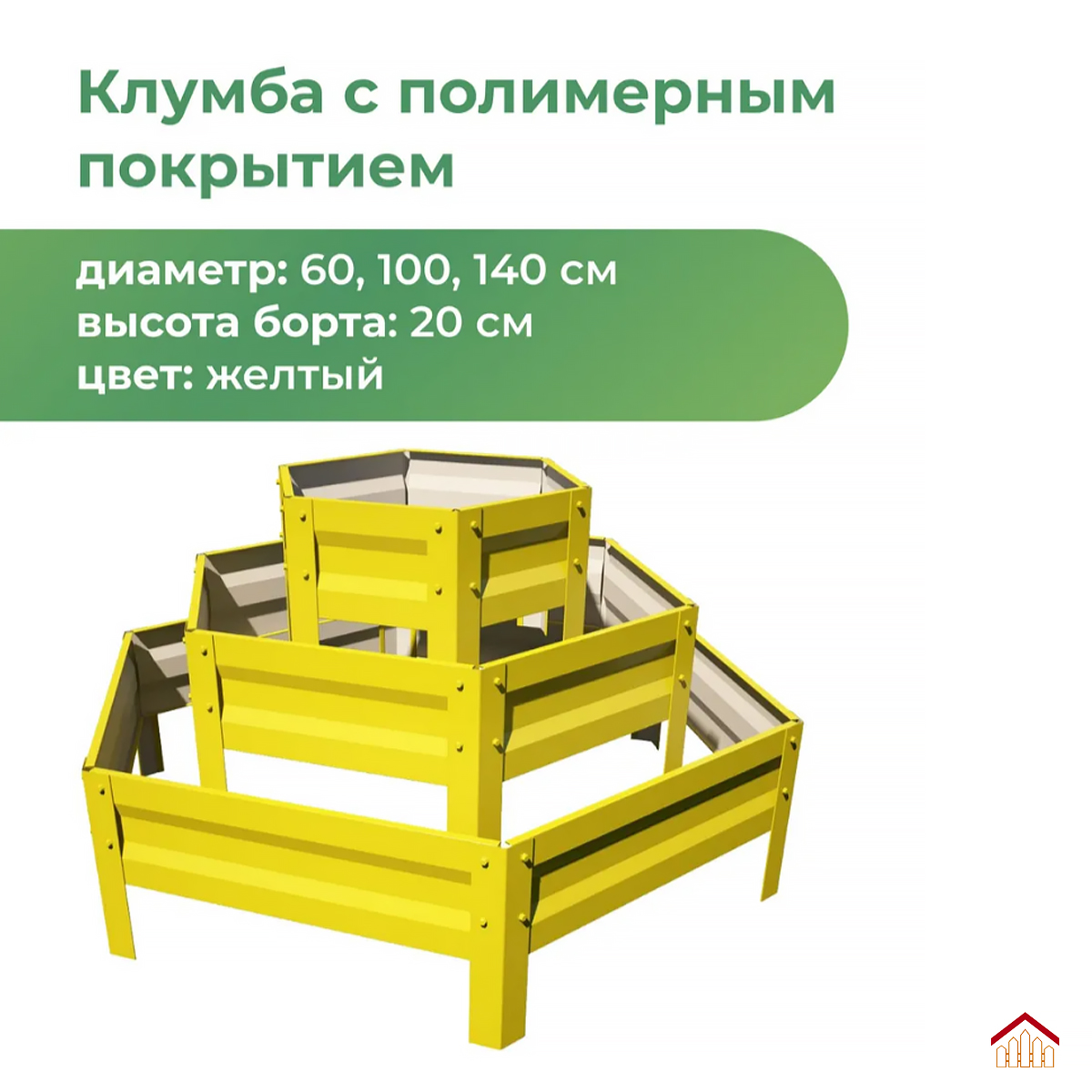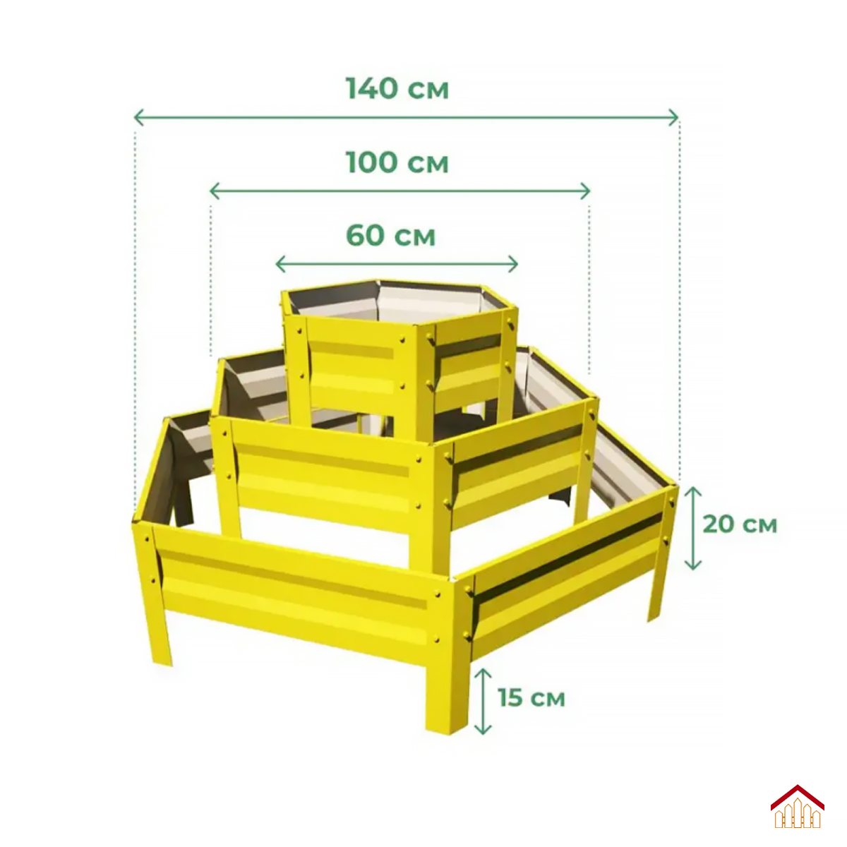 Эта трехъярусная клумба станет настоящим украшением вашего сада или дачного участка. Изготовленная из высококачественных материалов, она отличается прочностью и долговечностью. Высота каждого яруса составляет 0,2 метра, что позволяет удобно размещать растения на разных уровнях. Клумба имеет шестиугольную форму, что придает ей элегантный и современный вид. Диагонали ярусов составляют 0,6 метра, 1 метр и 1,4 метра, что обеспечивает достаточное пространство для выращивания различных цветов и декоративных растений. Цвет клумбы — RAL1018 желтый, что соответствует яркому желтому оттенку, гармонично вписывающемуся в садовую композицию. Благодаря своей конструкции, клумба позволяет создавать красивые многоуровневые композиции, где каждый ярус может быть засажен разными видами растений. Это не только украсит ваш сад, но и позволит более эффективно использовать пространство. Клумба легко собирается и не требует специальных инструментов, что делает ее установку простой и быстрой. Она устойчива к воздействию погодных условий, не подвержена коррозии и не требует особого ухода. Эта клумба станет отличным выбором для тех, кто хочет создать красивый и ухоженный сад без лишних усилий.