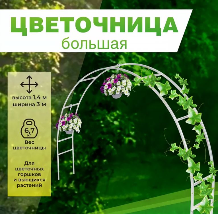 Обращаем Ваше внимание на то, что горшки и держатели для горшков в комплект не входят. На фотографии представлен один из вариантов оформления. Сварные изделия рекомендуем собирать в перчатках.