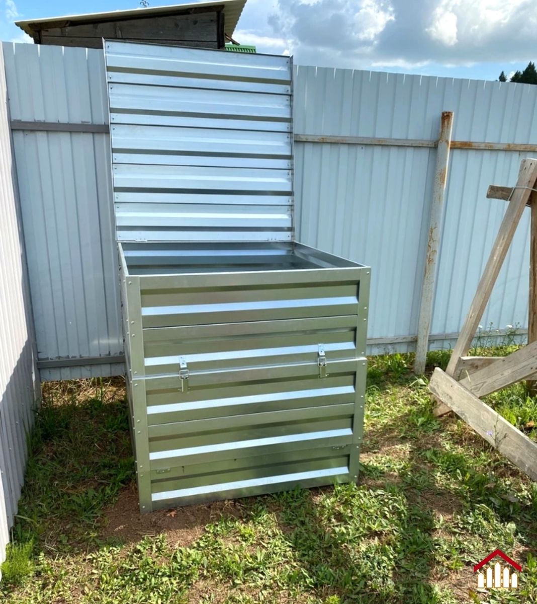 Стильный и практичный ящик для компоста объемом 1000 литров станет отличным решением для переработки органических отходов прямо на участке. Благодаря прочному покрытию из цинка изделие надежно защищено от коррозии и прослужит долго.